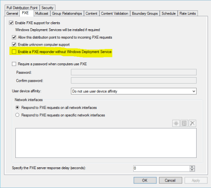 - Click Enable a PXE responder without Windows Deployment Service under PXE tab.