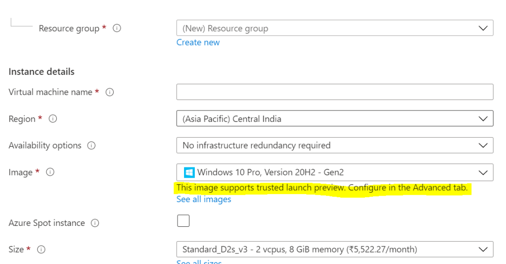 Recently I was performing some test for my new project and strike with excellent feature on Azure – Trusted launch. It is a security feature for Azure generation 2 VMs and protects against advanced and persistent attack techniques.