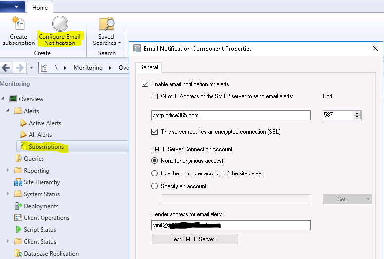 2. Configure “Email Notification” from Monitoring>Overview>Alerts>Subscriptions>Configure Email Notification.